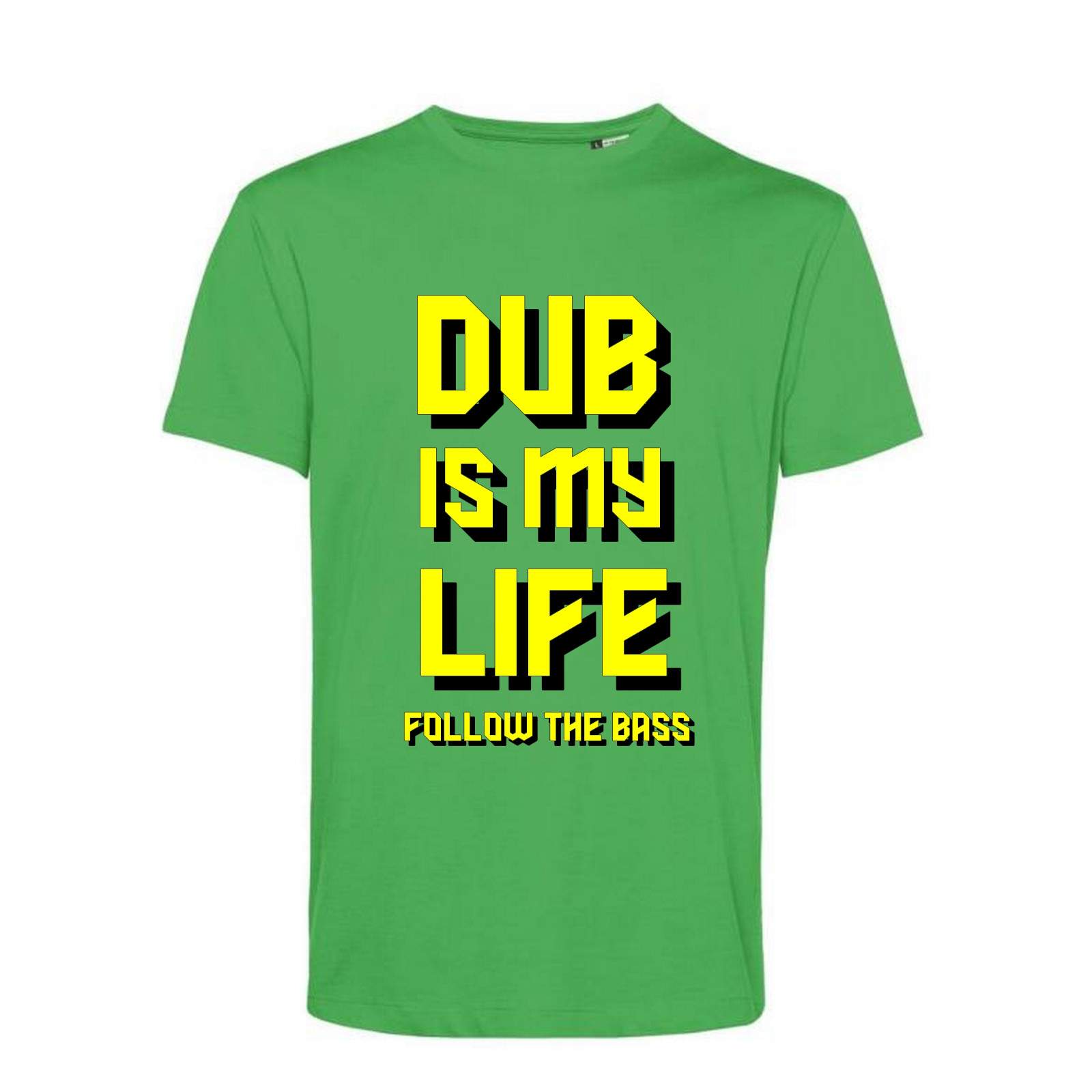 DUB IS MY LIFE en jaune et noir sur T-shirt vert prairie